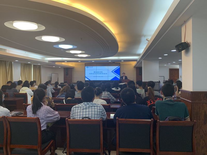 为让本科生尤其是刚入学的2020级新生系统地了解学院、学校创新人才培养体系,本次双选会增加了集中宣讲环节,基础医学与公共卫生学院院长王华东出席并致辞,药理学系主任、靶向药物临床转化中心负责人林熙副教授为同学们详细介绍了医学创新人才的培养模式和已经取得的培养成效。宣讲会设置了线上线下两个会场,共计120余位学生参会。