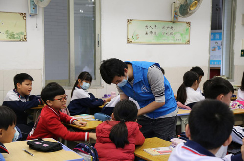 到达目的地后,科普小队严格配合学校进行体温测量、健康登记等防疫措施,在与各班班主任对接后,终于来到各自负责科普的班级。成员们尚未踏入教室即被眼前一幕所触动:一个个小小的身影纷纷围在黑板前为本次科普志愿活动做着主题手抄报,代表着医学的“红十字”、“药丸”、“心电图”等图画在小朋友们的一笔一画下跃然于黑板之上。其中,黑板上“醫者仁心”四字在这注定不平凡的一年中格外触动医学子的心弦。