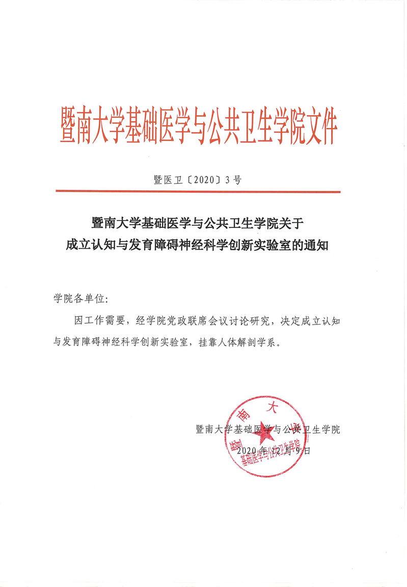 御宅屋 关于成立认知与发育障碍神经科学创新实验室的通知