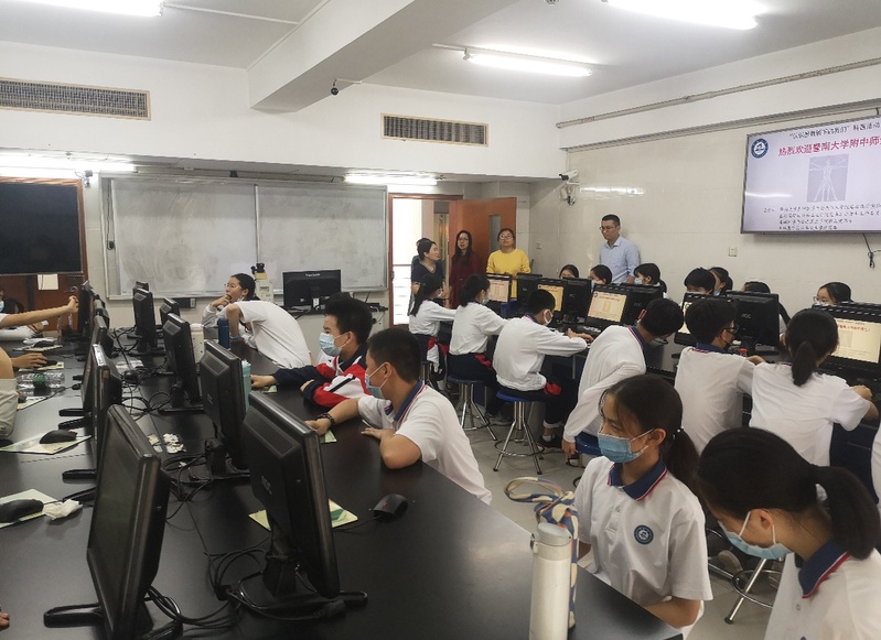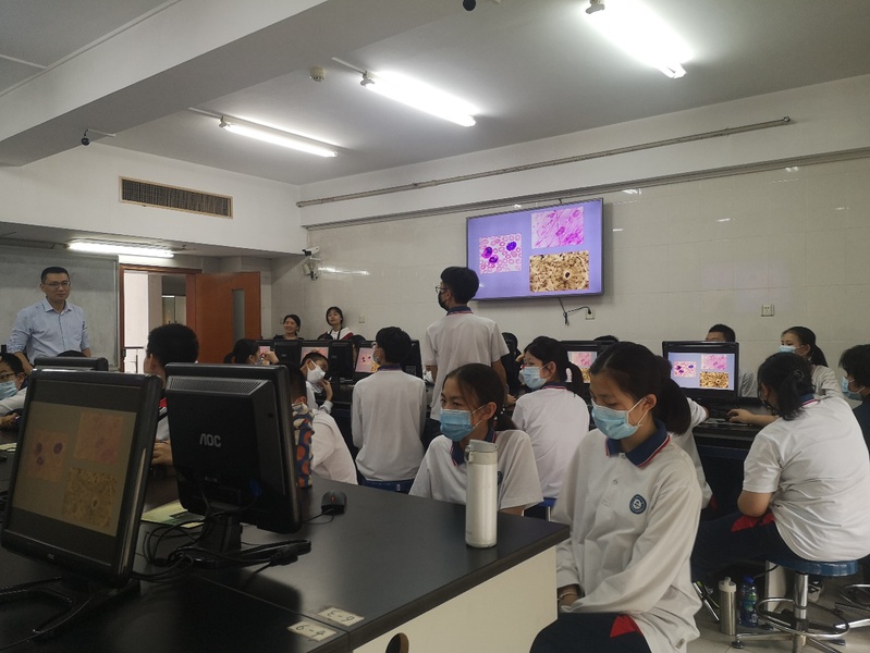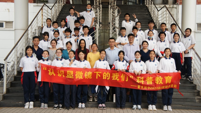基础医学实验教学中心主任王广副教授、工会副主席黄华梅老师、教工党总支书记吴秀丽研究员、团委书记罗超华老师与暨大附中2020级2班老师及全体同学参加了本次活动。