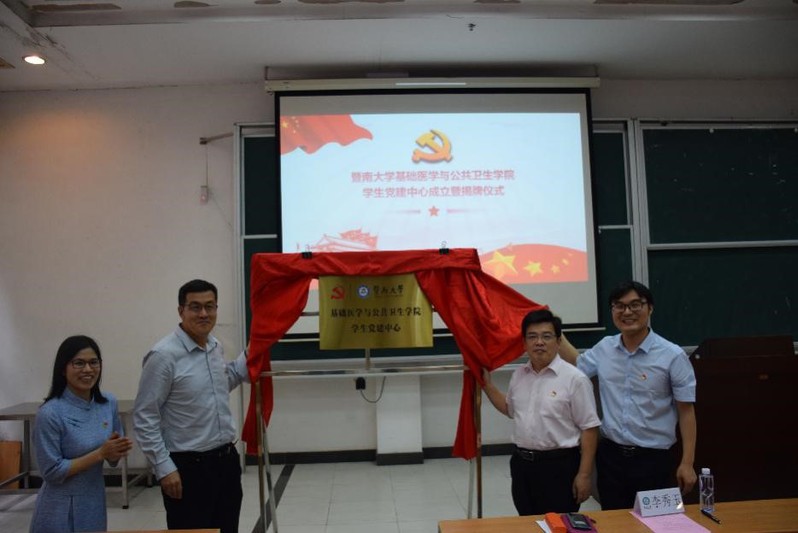 4月18日下午,基础医学院与公共卫生学院学生党建中心成立大会暨揭牌仪式在医学院101举行。学院党委书记陈剑、院长王华东、学院党委副书记兼学生党总支书记李秀玉以及100多名学生党员参加了此次揭牌成立仪式,仪式由学生党总支副书记罗超华主持。