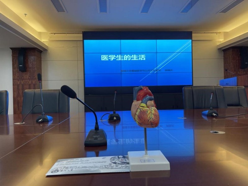活动开始前,党支部专门给每位同学准备了小礼物:临床医学专业的师兄师姐们绘制的解剖明信片及德仁公司赠送的袖珍心脏模型和椎间盘突出的模型。同学们惊叹于师兄师姐的想象力和绘画技巧,意识到医学生的学习生活原来也很有趣;模型也是同学们喜欢的,特别是经郭国庆教授讲解椎骨长期受力会压迫脊神经引起腰疼后,同学们对医学产生了浓厚的情趣。随后郭国庆教授做了“医学生的生活”讲座,从四方面总结了医学专业的特点:“课程多、记忆多、成长慢、寿命长”,讲述医学生成长成才的道路,鼓励他们不畏医路艰辛,探索科学,寄语同学们:“医疗,是用一颗心倾听另一颗心的活动”,希望他们做真正喜欢医学的人。
