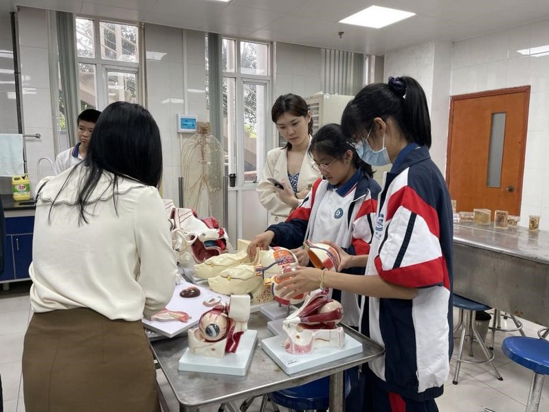 同学们饶有兴趣地拆装解剖模型