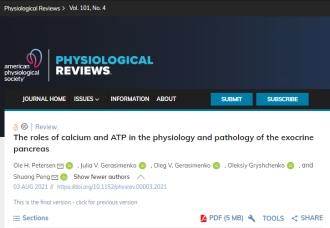 近日,御宅屋 彭爽副教授与英国卡迪夫大学(Cardiff University)Ole H. Petersen教授(欧洲科学院副院长、英国皇家学会院士、御宅屋 名誉教授)研究团队在国际著名学术期刊Physiological Reviews(影响因子:37.312)发表了题为“The roles of calcium and ATP in the physiology and pathology of the exocrine pancreas”的综述文章。御宅屋 为该论文的通讯单位,彭爽为共同通讯作者。
