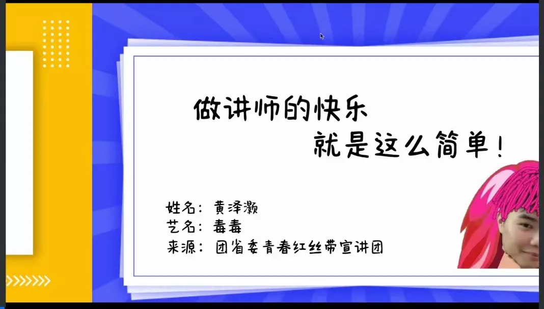 为推动御宅屋 青春健康同伴教育工作的开展,动员和号召我校更多的大学生关注和参与青春健康教育活动,加强青春健康同伴教育的经验交流,帮助学生骨干提升相关专业能力与素质,选拔、培养优秀的青春同伴教育讲师,6月18日下午,在学院医青青教部的组织下,特邀请团省委青春红丝带宣讲团讲师、广东省青少年性健康联盟讲师,广东省2020年魅力讲师大赛一等奖选手,2020年广东省教育厅学生骨干培训班师资黄泽灏和华南农业大学红十字会副会长,团委青春红丝带宣讲团讲师,广东省青少年性健康联盟培训部部员揭宇为主讲嘉宾,举办了线上“讲师的魅力”主题讲座,为学院学生骨干分享了关于讲师成长的心路历程。