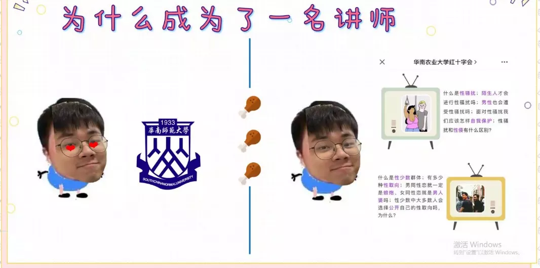 其次,他觉得讲师这一身份也给予了他快乐,他能够坚持作为讲师去为同学科普最大的动力来源于他的行动真正给予了同伴以帮助,比如他谈到在“谈性色变”的大环境下,他作为性教育讲师为同学科普相关知识,倡导以平常心对待“性”,为同学切实解决了一些关于性的烦恼,这也让他体会到“赠人玫瑰,手留余香”的快乐。