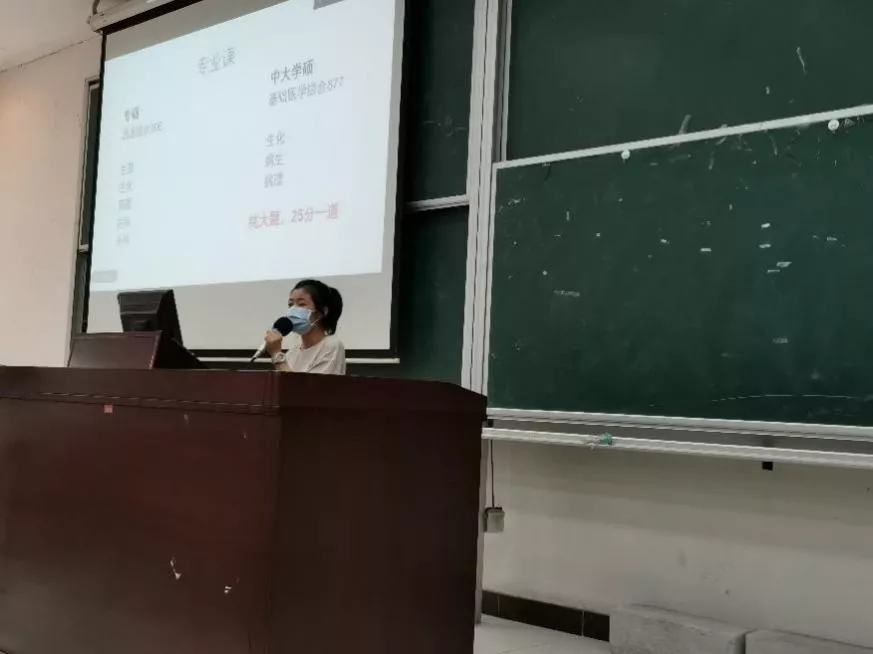 马天顺则从自己的简历出发,与大家分享了他的考研之路。从考研的报考流程、笔试、各学校的分数线、面试前各科室的分数线等他均做了详细地介绍。他强调:“考得好不如报的好,大家一定要根据自身能力,报考相应学校和专业的同时,也要选择适合自己的复习策略,主动迎战考研而不是被动考研。”