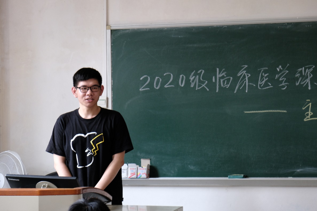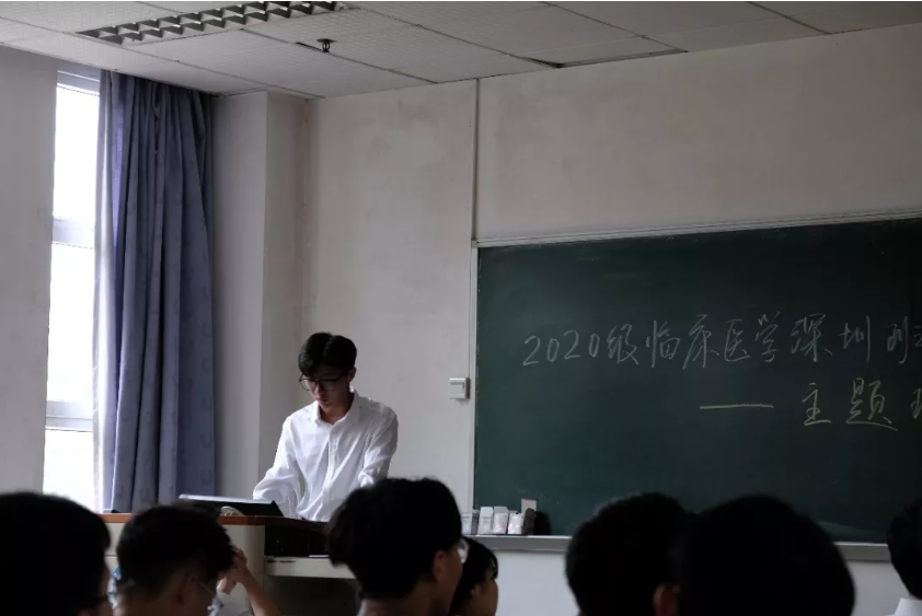 班会开始,班长黄光桐介绍了班级的基本情况、存在的问题、解决问题的方法以及班级的建设目标。就班级基本情况,黄光桐着重介绍了班级口号——“用志不分,乃凝于神,竞优求真,医往而深”和班级班服——“医深所爱”的内涵及由来。此外,针对班级目前存在的问题以及建设目标,黄光桐也提出了切实可行的办法以及 “班团一体化”、“促进内外招生融合”等班级建设目标。