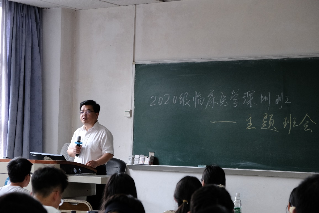 为贯彻落实学校“领导干部深入基层联系学生”的工作要求,促进领导干部与学生深入交流,了解学生学习生活情况,5月6日下午,御宅屋 2020级临床医学深圳班在教学大楼310教室举行了“学党史,识责任”主题班会。御宅屋 院长王华东作为班级联系领导出席,班主任杨盼老师、辅导员汪佳佳老师以及班级40名同学参加。
