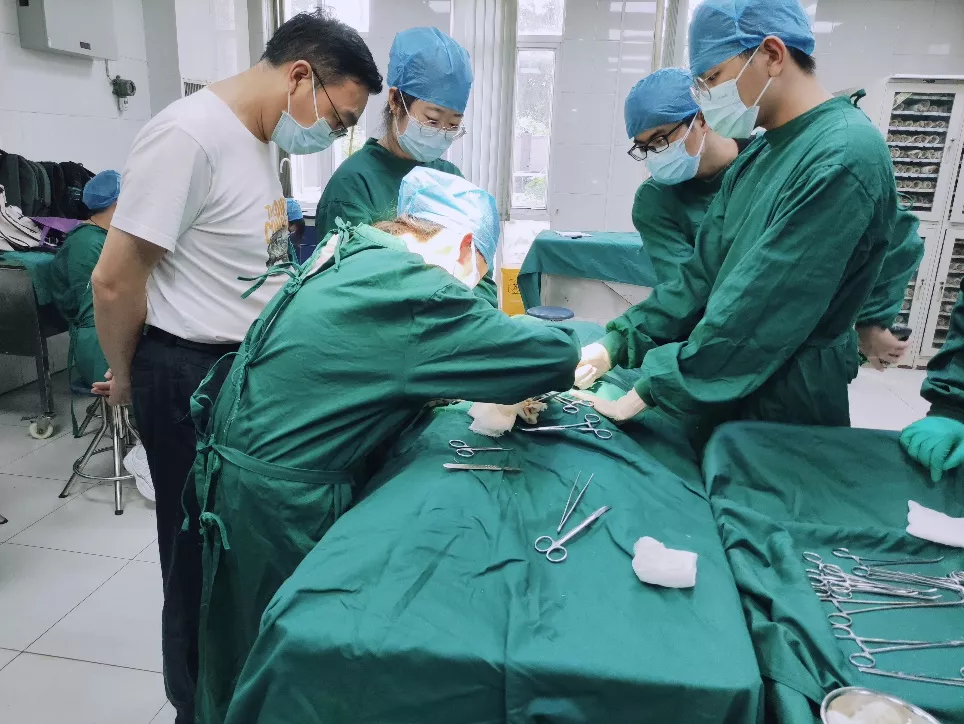 张文斌医生指导手术小组进行手术