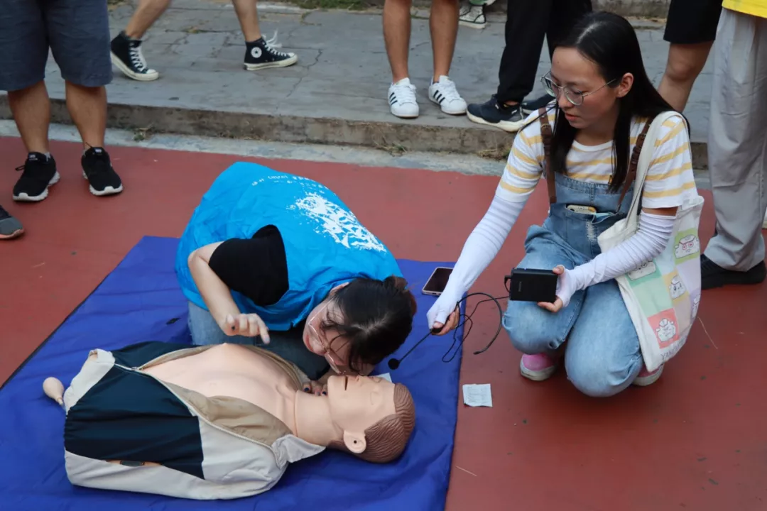 在摆摊区,急救部成员手把手、一对一将各种急救常识、急救技能传授给每位外招新生,精心准备的小游戏也让大家在游戏过程中体验急救的重要性!整个活动充实而有趣。