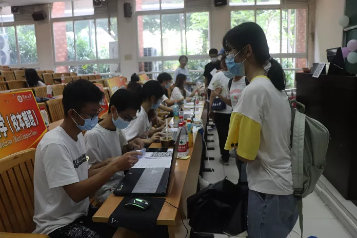 9月5日报到当天,从学校南门新生入校处,到医学院一楼大门前、内部走廊,迎新志愿者和路线指引牌无处不在,共同期盼着新同学们的到来,指引他们有序前往101阶梯教室办理手续。教室内,从签到、报道、身份核验、信息校对,到校园卡和银行卡办理、新生训练营服装发放、领取新生大礼包,每项手续都安排了专门同学负责,每个步骤都张贴了简洁明了的指引,新生报到工作在众多志愿者的努力下有条不紊地进行着。