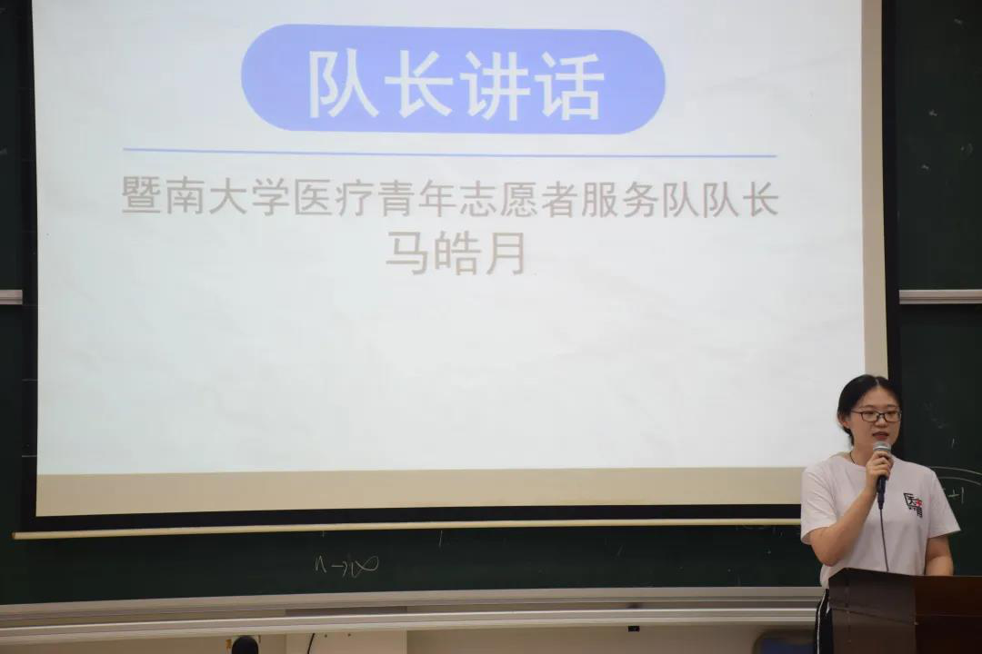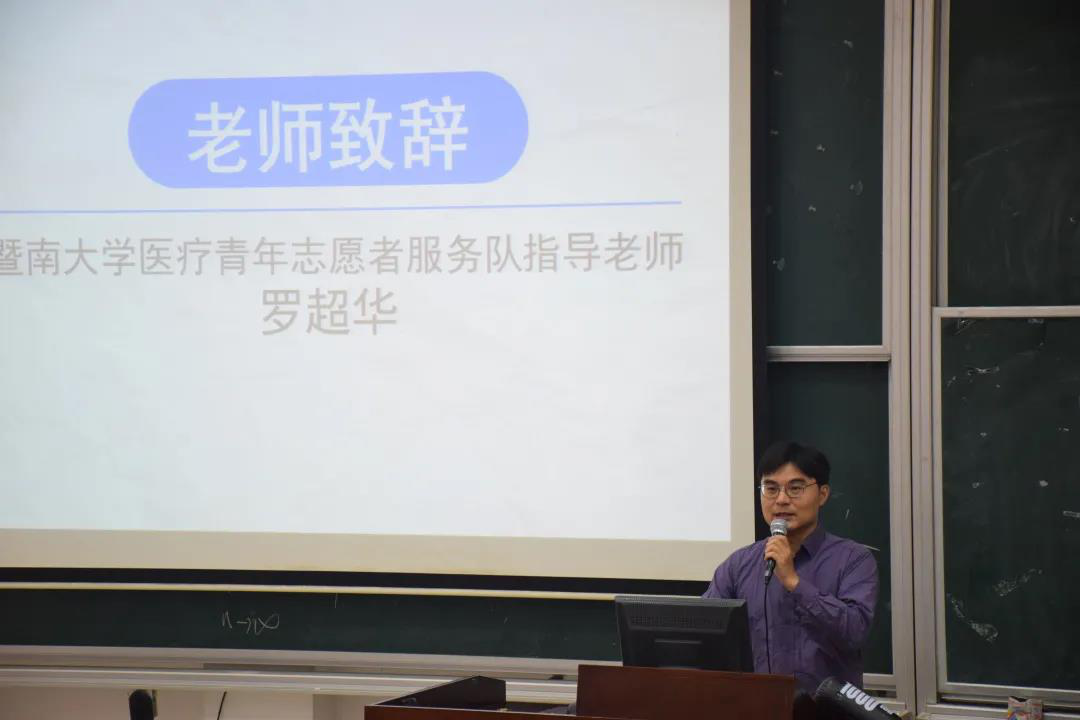 大会伊始,罗超华作为指导老师代表致辞。他表示身为志愿者,首先要具有服务的热情和志愿意识,其次要锤炼自己的本领,让民众们感受到医学生的专业素养和专业技能。他以医青成立以来举办的许多特色活动为例,指出当与国家医学相关节日有机结合在一起时,志愿行动会被赋予更深层次的内涵与意义。最后,罗超华向每位志愿者送出祝福,希望同学们可以在医青这个大家庭中收获满满,同时也留下难忘的回忆。