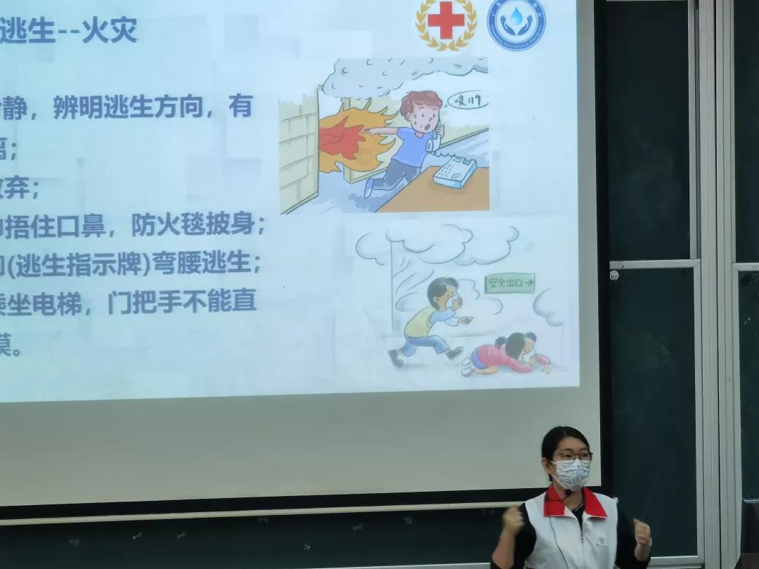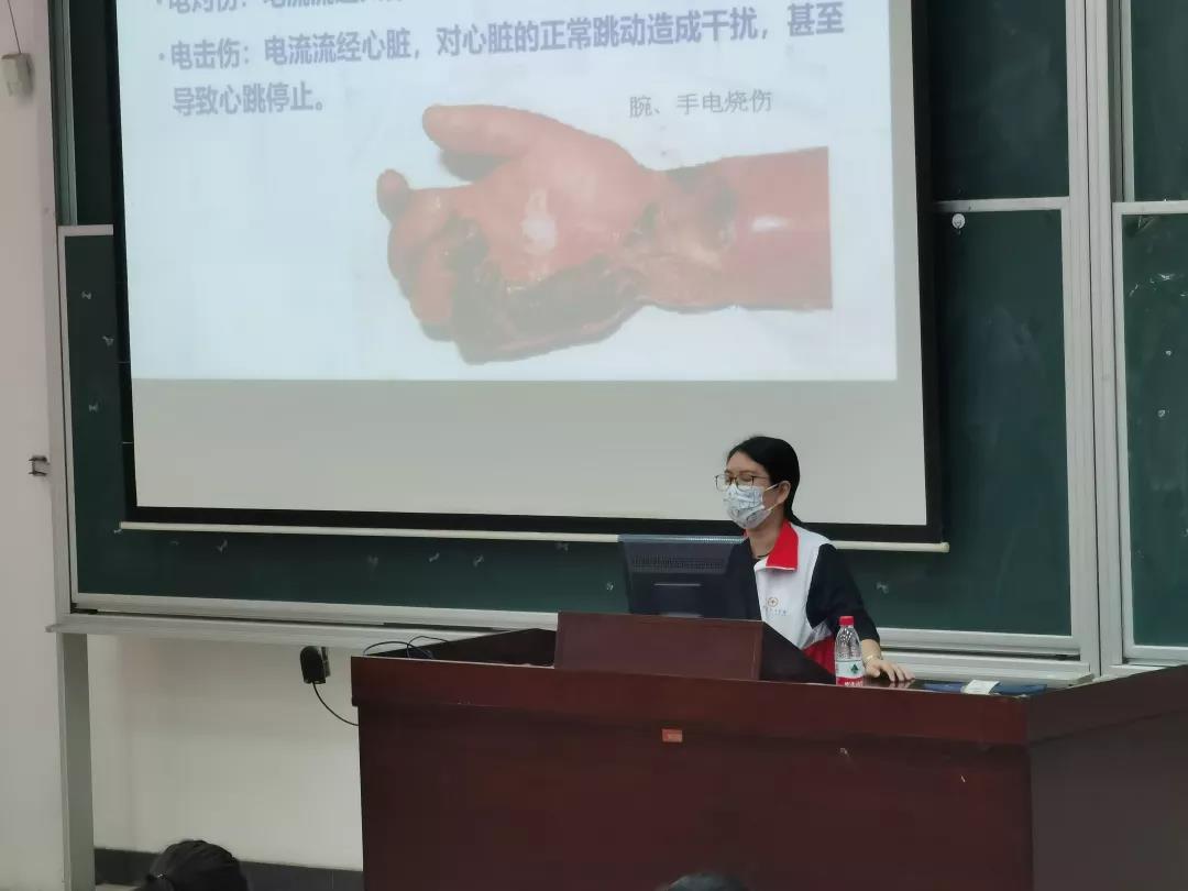 11月20日上午9时,在完成了签到任务后,红会专职培训老师首先进行了线上理论知识的回顾。许老师详细地讲解了在面对突发事件(地震、火灾、洪涝灾害)、意外伤害(交通事故、烧烫伤、电击伤、淹溺、急性中毒、动物咬伤、气道异物梗阻)以及日常生活中的常见急症(意识障碍、休克、晕厥、昏迷、脑卒中、支气管哮喘、癫痫)的应对措施与救护方法。在讲解过程中,同学们也将自己的疑惑向老师们提出,老师也从专业角度进行了耐心地回答。