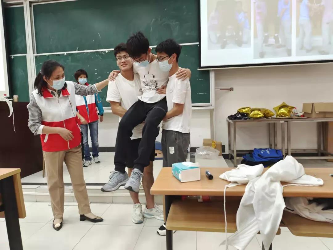 下午13时,同学们准时开起了实操演练的内容。整个培训过程中,同学们学习热情高涨,积极踊跃参与,大家听课仔细、操作投入,有些非临床医学专业的学生,手法显得不够娴熟,但他们非常认真用心地跟随培训老师的指导,谨记操作每一项急救步骤。绷带包扎、三角巾包扎、伤员搬运护送等一系列操作一一上演,“现场评估、判断病人意识呼吸消失、胸外心脏按压、开放气道、人工呼吸……”,一步步争分夺秒的急救流程,他们通过反复操作谙熟于心。活动现场,培训老师和同学们在现场展开了有趣又令人印象深刻的互动,使大家对各项救护技巧有了深入的了解和认识。最后,培训老师还开展了实操部分的考核,通过考核大家能够化理论为实践,更好的领会知识要领。
