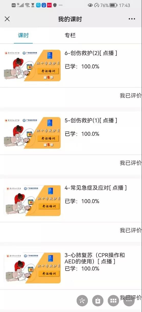 自10月23日起,报名参加的同学首先需要通过线上急救理论知识学习并顺利通过考核方可参加最后的线下实操技能培训。线上理论学习内容包括红十字知识、救护概述、突发事件与意外伤害、心肺复苏与自动体外除颤仪介绍、常见急症、创伤救护(四项基本技能)1、创伤救护(四项基本技能)2等7个模块,理论考核超过80分方才合格。在线下培训之前进行理论知识的学习,不仅可以提高学生自身在紧急情况下救助他人的水平和意愿,也可间接提高学生周围人群对相关急救知识的认知。