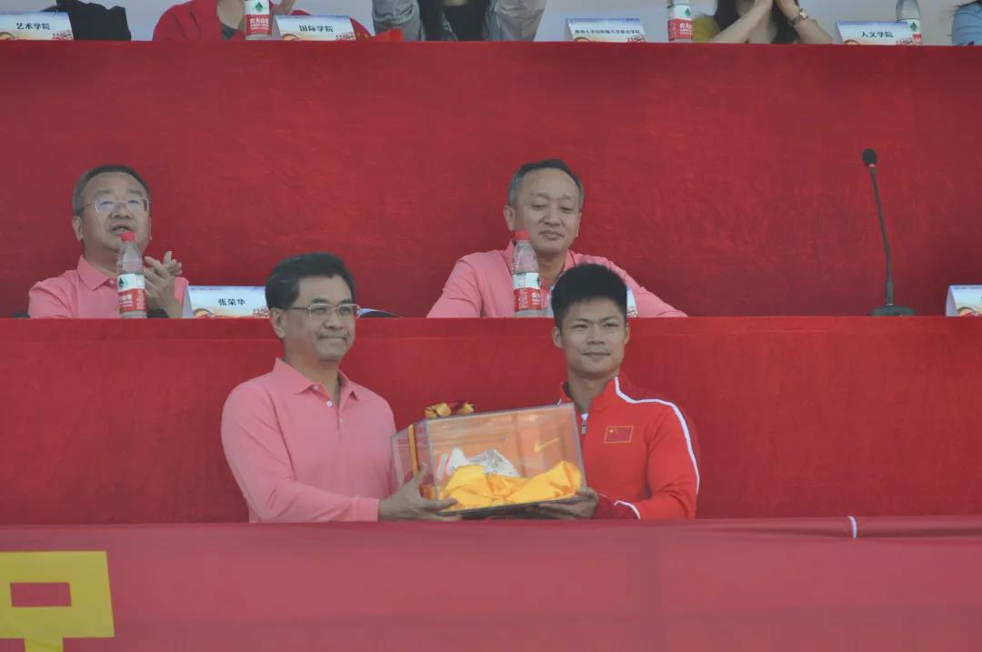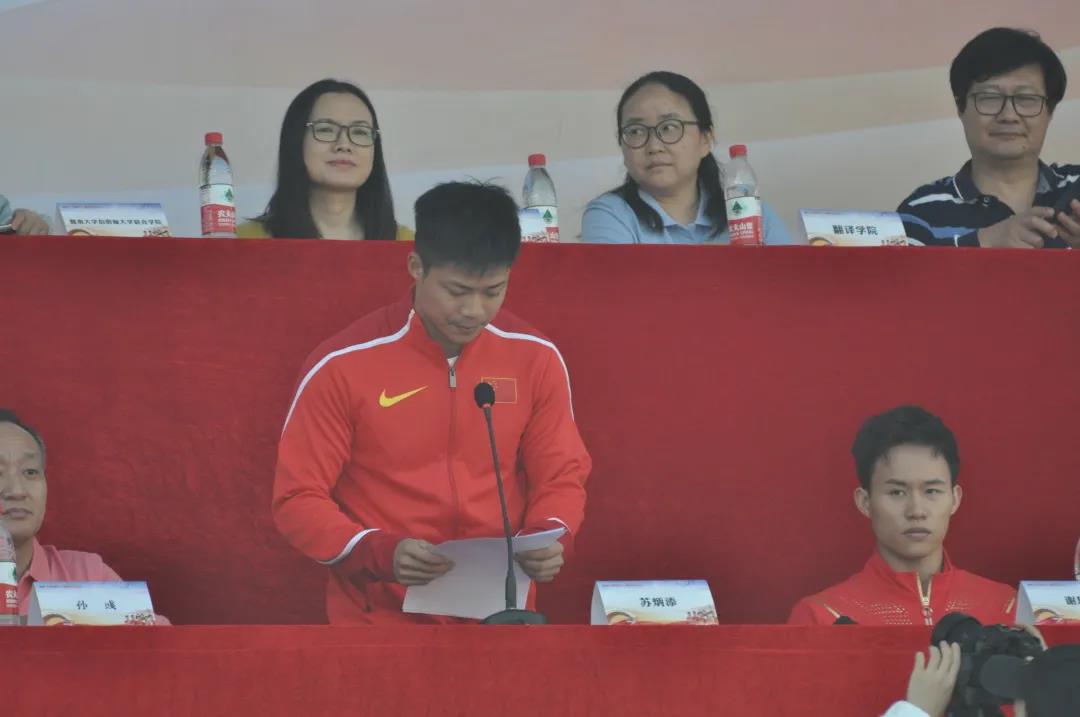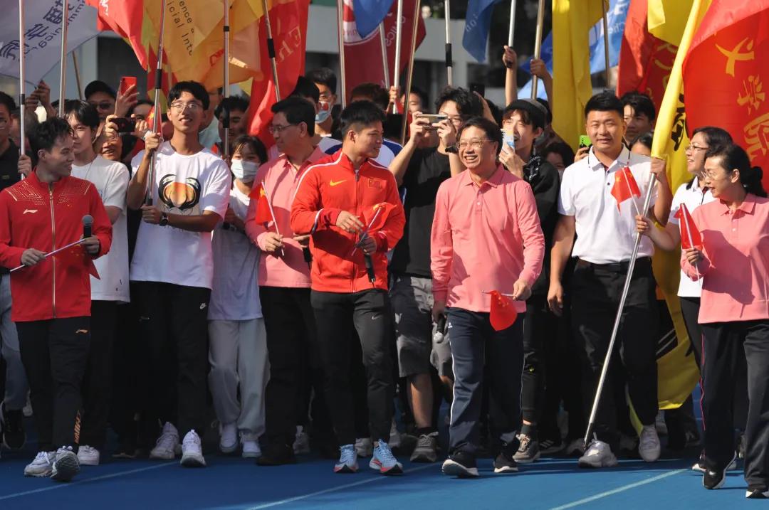 校运会开幕式上,有英姿飒爽的国旗护卫队,有给人极致震撼的暨南功夫,更有奥运健儿们的矫健身影。其中亚洲飞人苏炳添作大会致辞,弘扬了体育道德风尚,宣扬了中华体育精神,鼓舞了广大暨南健儿!
