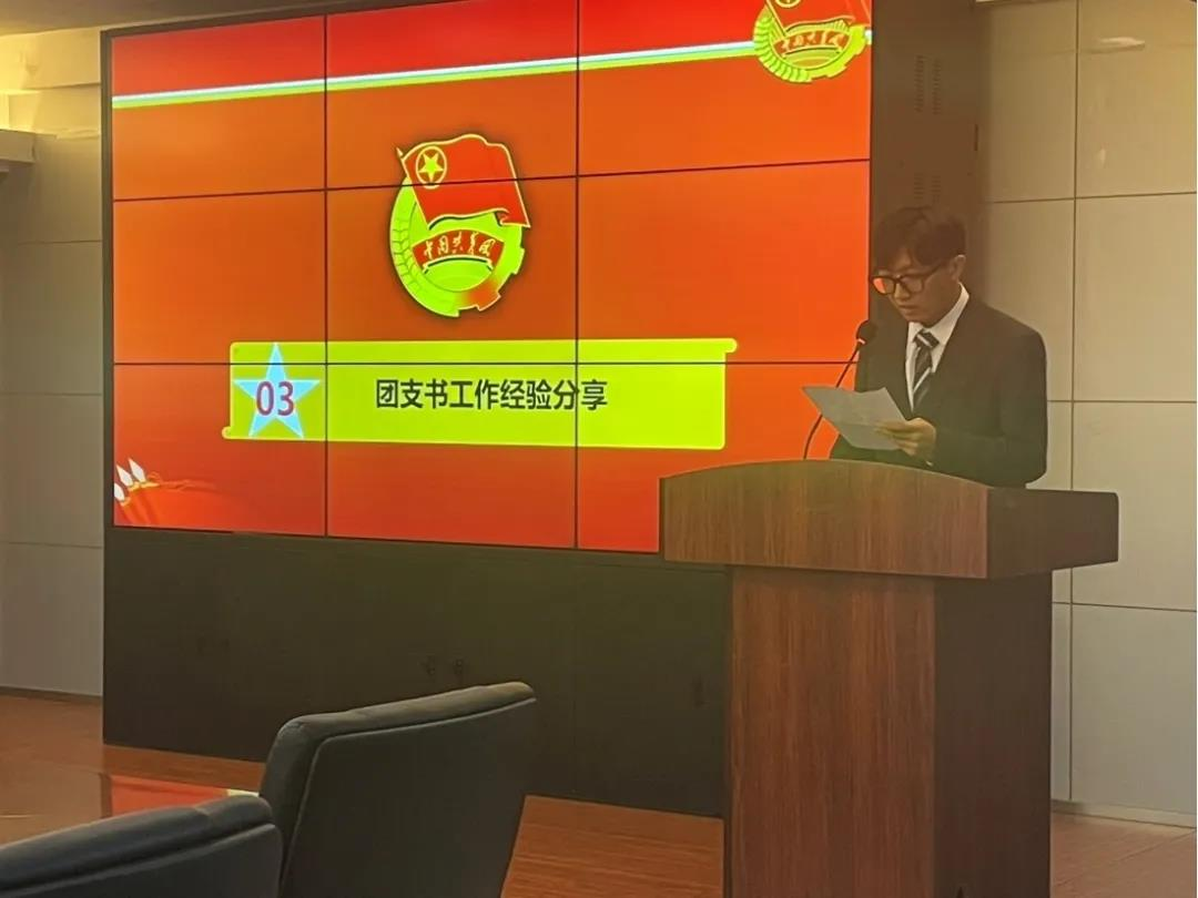 在嘹亮的团歌后,20级临深团支书卢禹桥作为优秀团支书代表进行了一个工作经验分享,他总结到,团支书应当对工作做好提前规划,与团支部内部成员建立良好沟通关系,并以身作则,成为支部中最有凝聚力、最有担当的、负责的好榜样。