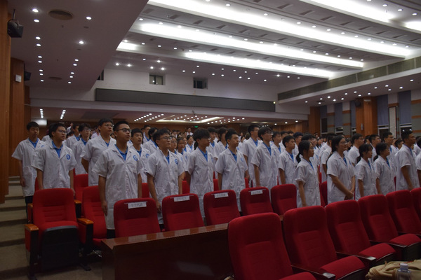 陈国兵、李秀玉为学生代表授予象征着医者仁心的白大褂。全体学生穿戴白袍,一起庄严宣誓,坚定有力的声音回荡在报告厅的每一个角落,尚显稚嫩的肩头从此多了一份责任——他们将作为新时代的医学青年,怀揣对生命的敬畏与信仰,以朝气勃发之姿态、勇敢无畏之品格,不断探索生命科学的奥秘,共同守护人类健康的希望。