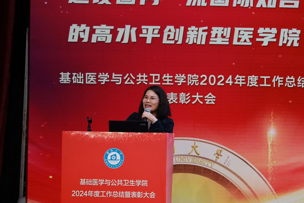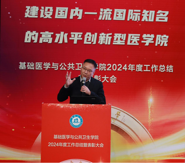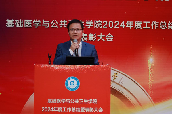 学院院长陈国兵作2024年行政工作报告并部署2025年行政工作。回望过去一年,学院紧紧围绕立德树人根本任务,深入推进教育、科技、人才“三位一体”协同融合,不断完善创新人才培养体系、研究生教育管理体制,学科排名持续上升,教学竞赛成绩亮眼,科研与人才项目取得突破。陈国兵向全体教职工的辛勤付出表示衷心感谢,并提出2025年的工作目标与期望:一是积极做好第十一届全国大学生医学创新大赛暨“一带一路”国际竞赛中南赛区复赛和本科教学审核评估工作;二是推进人工智能在本科教育教学过程中的应用,深化医学教育和人才培养改革;三是继续加大高层次人才引进力度,并整合人才、团队、平台资源,力争在科研平台建设和重大科研项目获批方面取得新成绩。