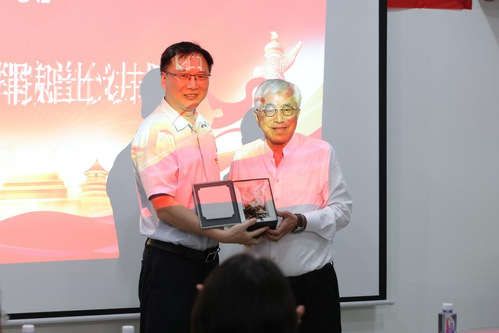 随后,李秀玉代表学院党委接受苏国辉院士赠书,陈国兵代表学院向苏国辉院士回赠纪念品,学生党员代表郭婷婷给苏国辉院士献花,现场掌声雷动,气氛温馨而庄重。李秀玉表示,此次苏国辉院士给学院党委党员活动室捐赠了539本中外文图书,涵盖党建、历史典籍、中国传统文化经典、科普读物、书法艺术、人物传记等大众读物以及生物医学、神经科学等专业领域的书籍,学院党委一定收藏好、保护好、宣传好、传承好、利用好这批书籍,在党建工作、在教书育人中发挥其最大价值,不辜负苏国辉院士的馈赠和期望。